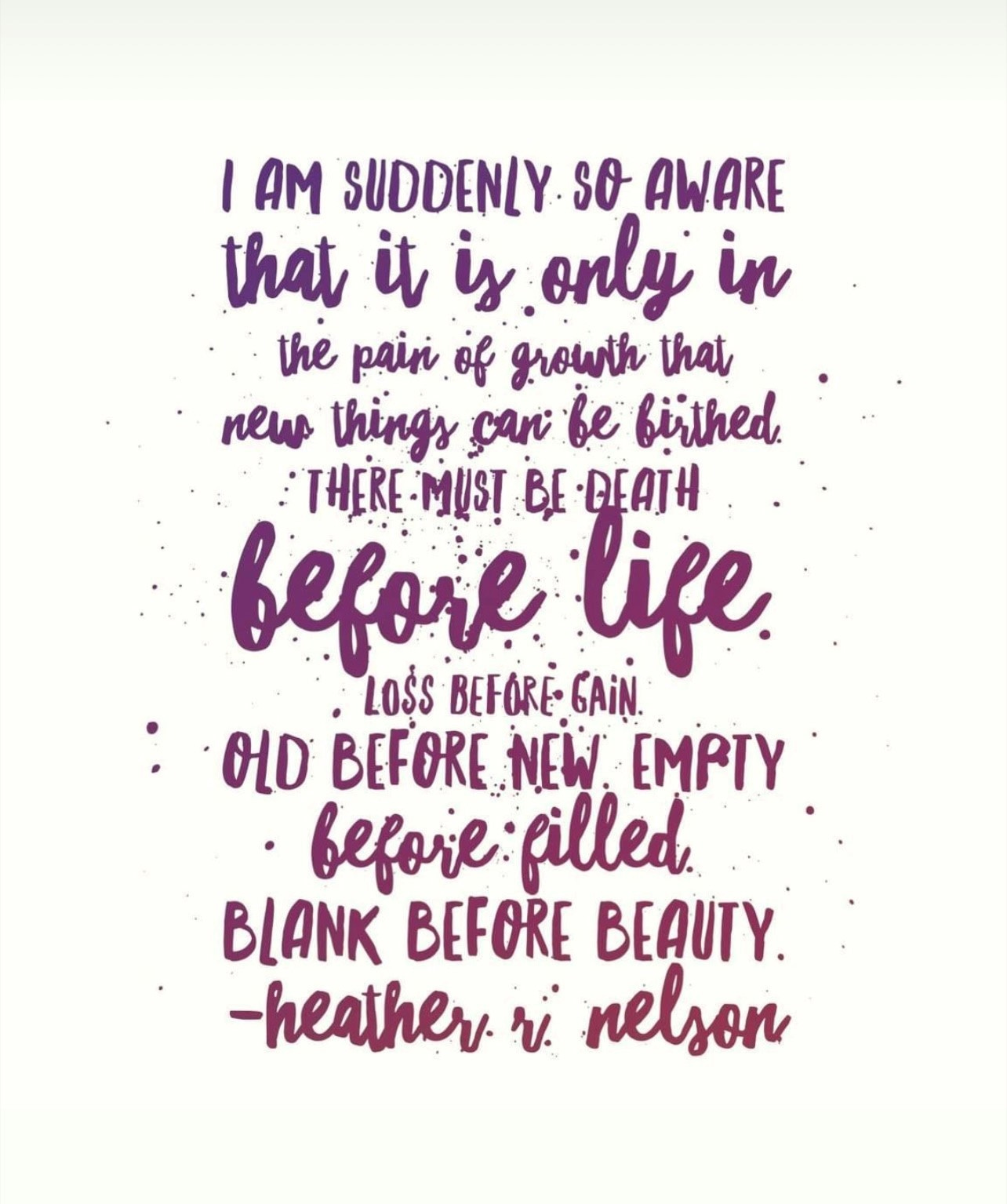I am suddenly so aware that it is only in the pain of growth that new things can be birthed.